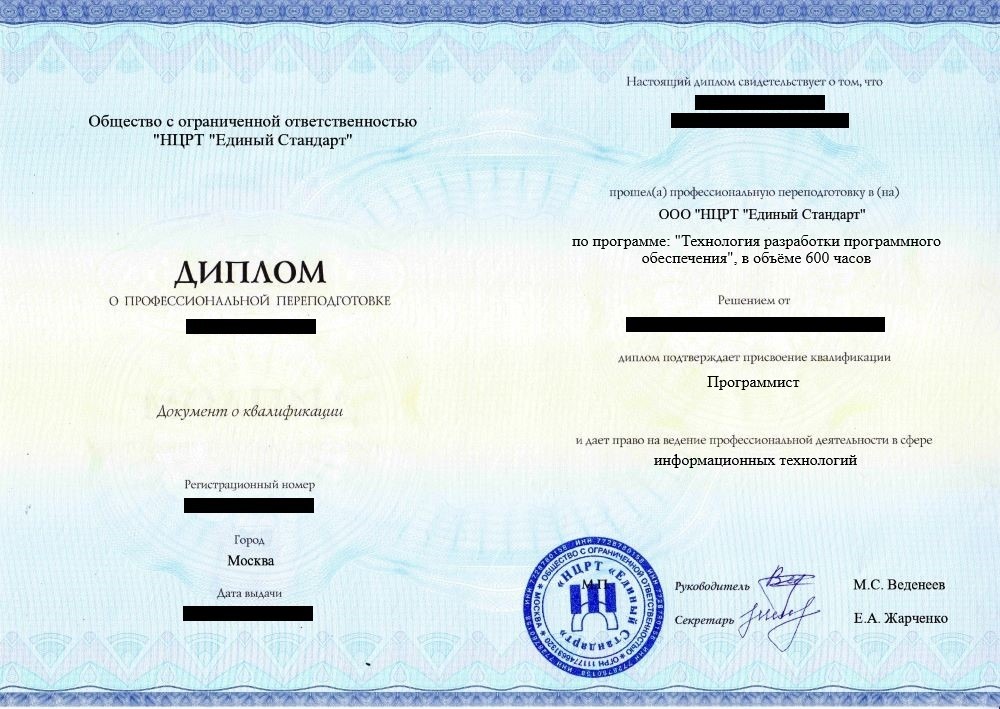 - Диплом о профессиональной переподготовке установленного государством образца. Срок действия: бессрочно