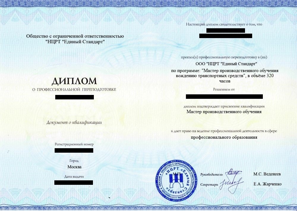 •  «Мастер производственного обучения» с правом ведения профессиональной деятельности в сфере профессионального образования